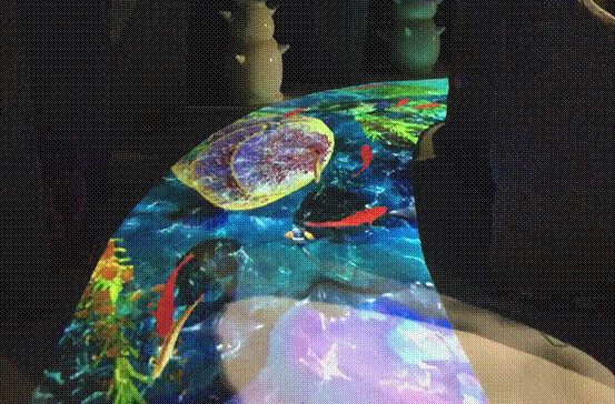 地面互動是參與者和地面上影像的真實互動,使多名參與者融入場景中,同時參與游戲。當(dāng)你踏入投影機(jī)投射在地面上的影像時,你可以直接使用雙腳在地面投影幕上的虛擬場景進(jìn)行互動,然而互動效果就會隨著你的腳步產(chǎn)生相應(yīng)的變化。