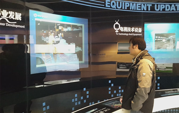 常州廣播電視臺是集廣播、電視、報紙、網站、移動電視、影視公司、動漫企業、圖書出版等為一體的全媒體新聞集團,在常州電視臺展廳的整體解決方案中包含了球幕投影、弧幕投影等,充分展現了常州電視臺的發展歷程。